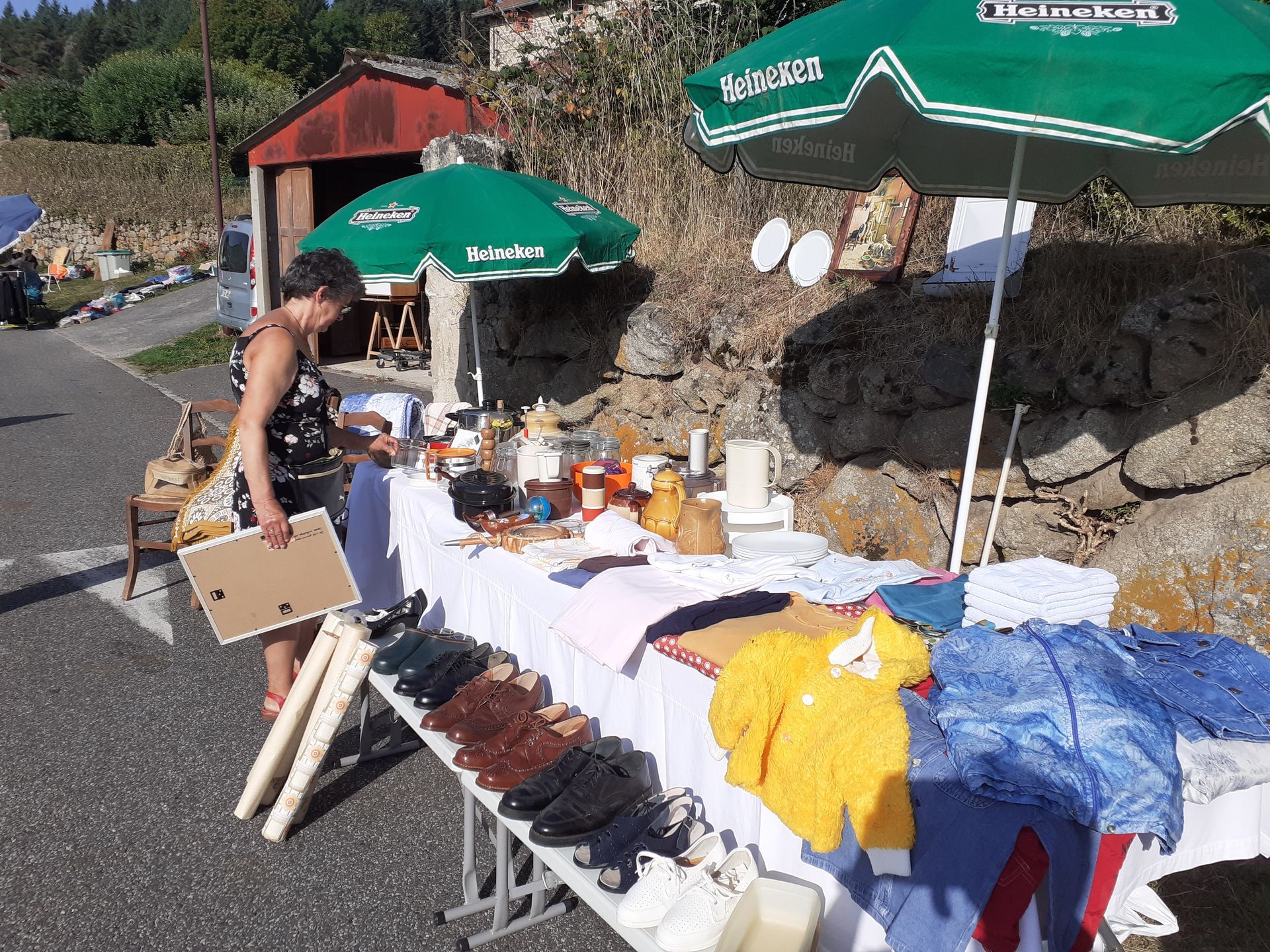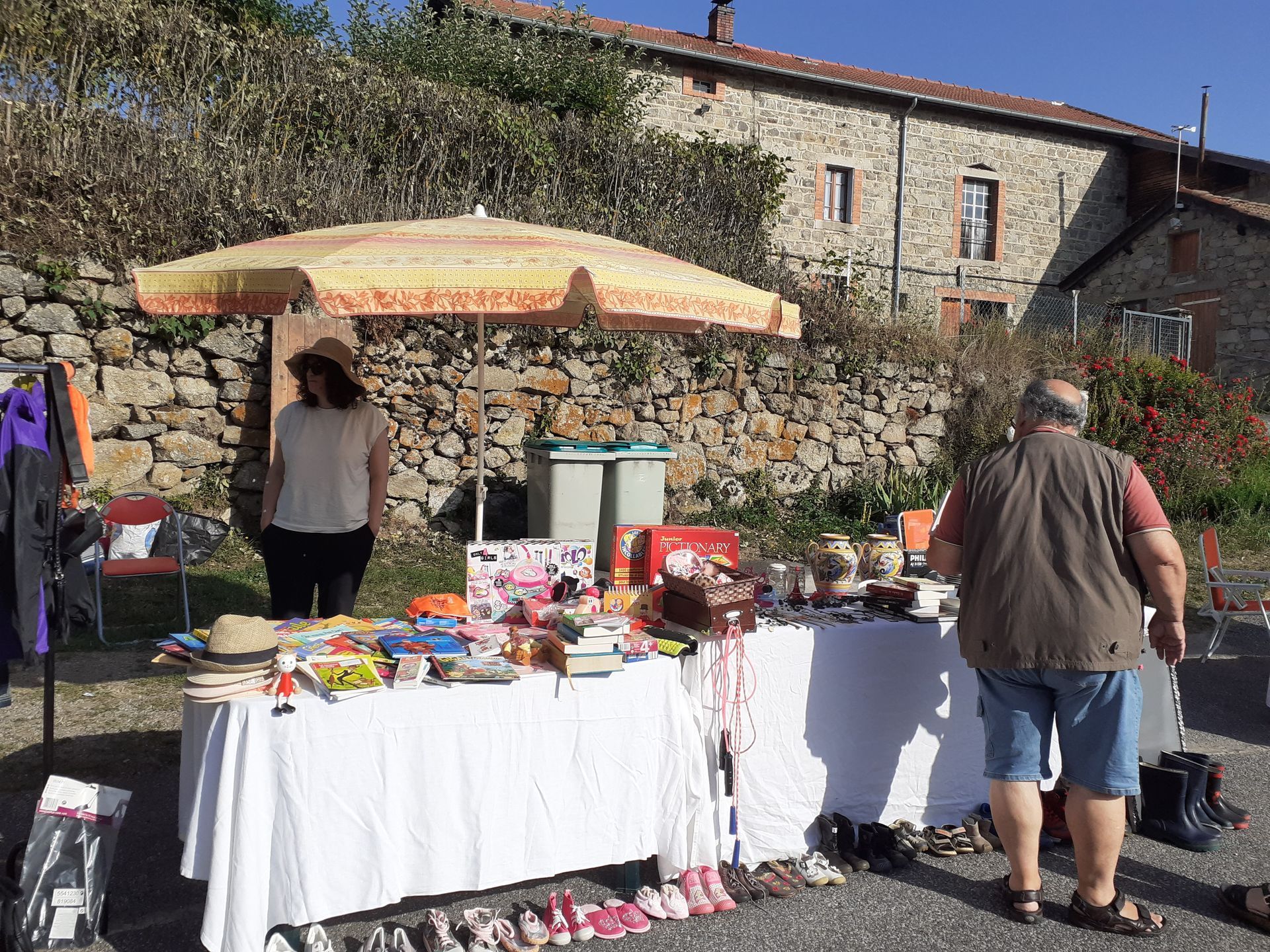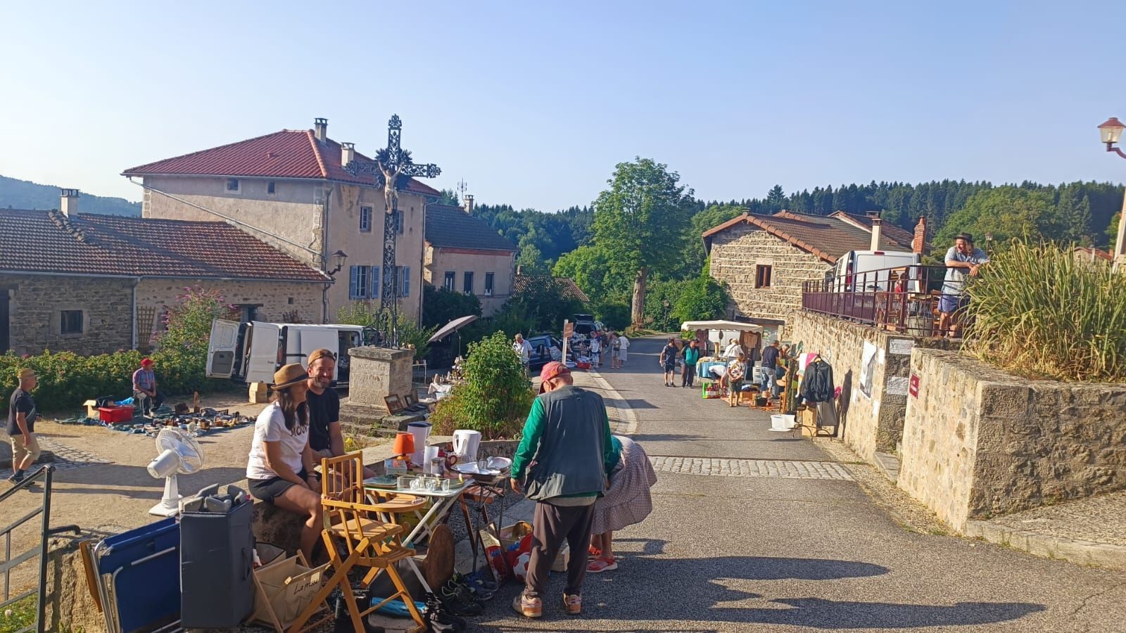 Ce dimanche 10 août, le village a accueilli son second vide-grenier annuel sous un soleil radieux et une chaleur accablante! Malgré cette météo estivale, les visiteurs sont venus flâner entre les stands à la recherche de bonnes affaires ou d'objets insolites dans une ambiance conviviale. Un jeu concours a animé la journée : il fallait trouver le nombre de bonbons contenus dans un sachet. La bonne réponse était ... 144! C''est Céline Rabaste qui a remporté le panier garni en jeu d'une valeur de 150€ comprenant des bons cadeaux et nombreux présents offerts par les commerçants de la commune et de la Chaise Dieu. Le comité des fêtes les remercie à nouveau pour leur générosité.