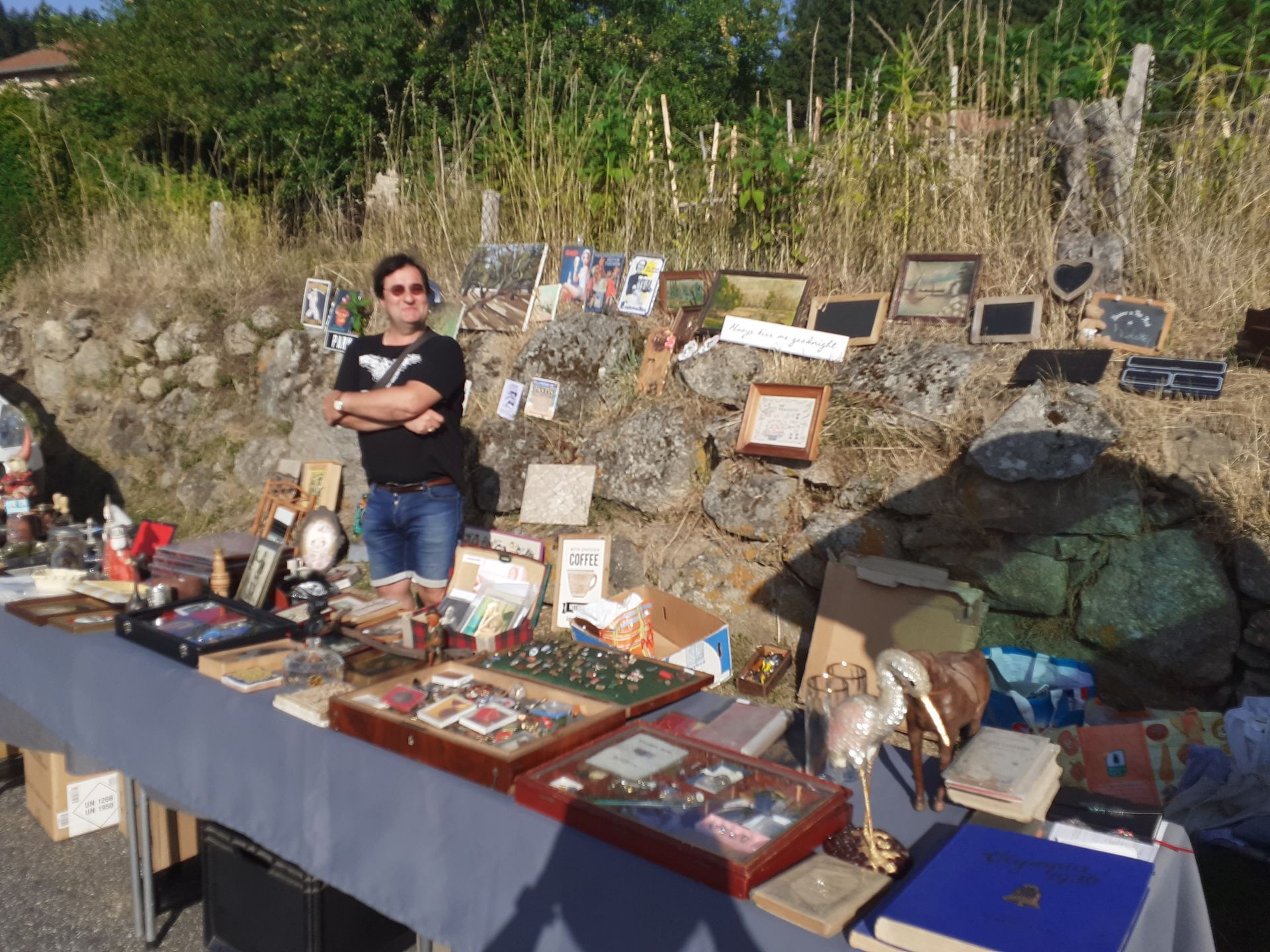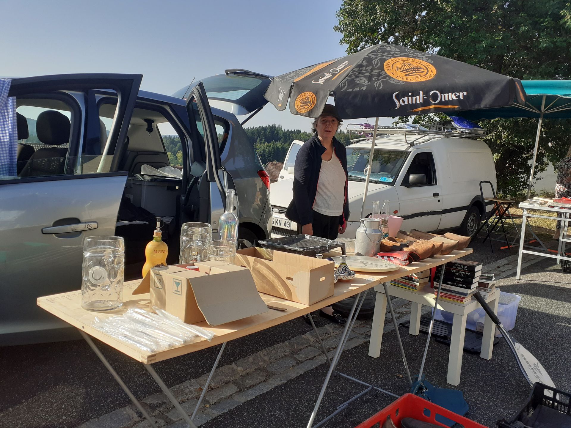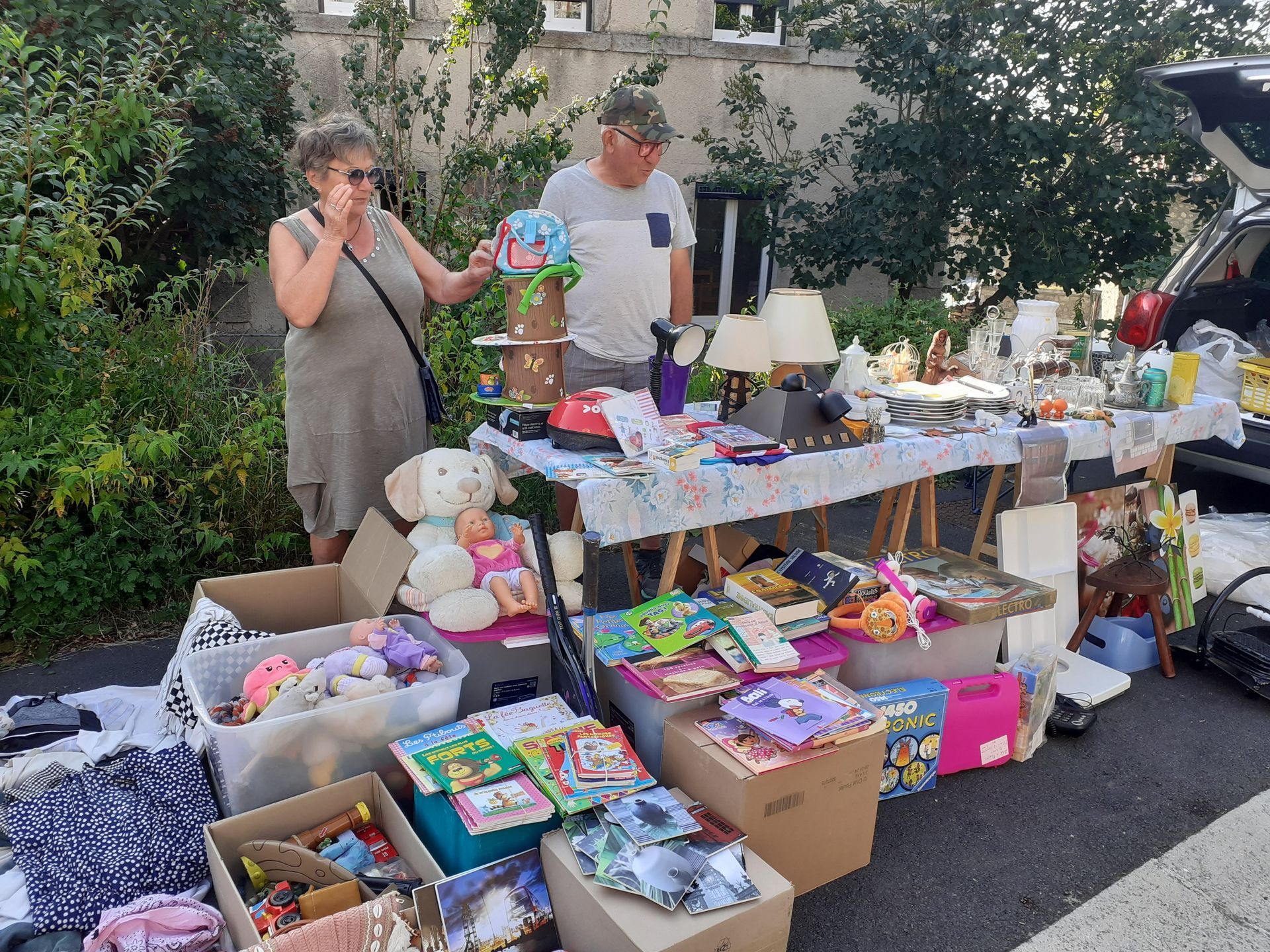 Ce dimanche 10 août, le village a accueilli son second vide-grenier annuel sous un soleil radieux et une chaleur accablante! Malgré cette météo estivale, les visiteurs sont venus flâner entre les stands à la recherche de bonnes affaires ou d'objets insolites dans une ambiance conviviale. Un jeu concours a animé la journée : il fallait trouver le nombre de bonbons contenus dans un sachet. La bonne réponse était ... 144! C''est Céline Rabaste qui a remporté le panier garni en jeu d'une valeur de 150€ comprenant des bons cadeaux et nombreux présents offerts par les commerçants de la commune et de la Chaise Dieu. Le comité des fêtes les remercie à nouveau pour leur générosité.