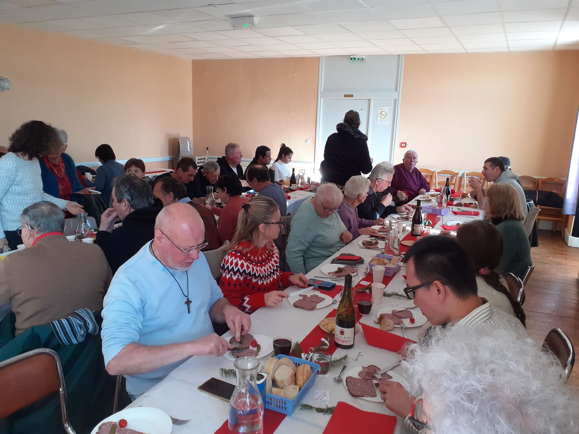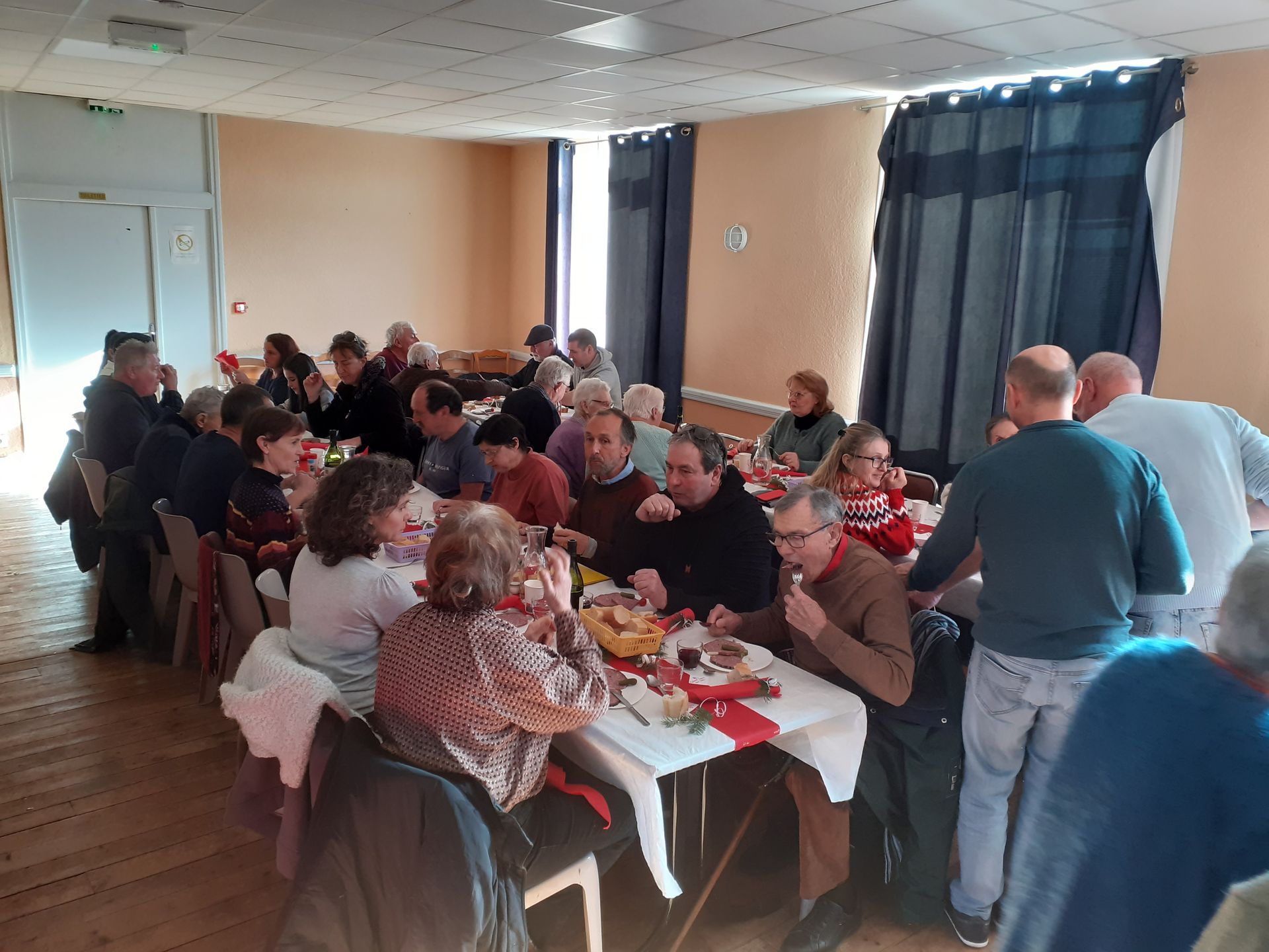 Une cinquantaine de convives a participé à ce moment convivial. Ce fut une grande réussite et les mets ont été appréciés par tous : apéritif , terrine de chevreuil, puis chevreuil en sauce accompagné d'une purée onctueuse, fromages de région .