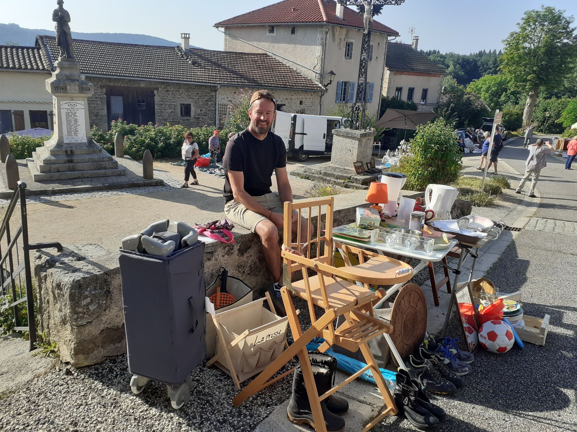 Ce dimanche 10 août, le village a accueilli son second vide-grenier annuel sous un soleil radieux et une chaleur accablante! Malgré cette météo estivale, les visiteurs sont venus flâner entre les stands à la recherche de bonnes affaires ou d'objets insolites dans une ambiance conviviale. Un jeu concours a animé la journée : il fallait trouver le nombre de bonbons contenus dans un sachet. La bonne réponse était ... 144! C''est Céline Rabaste qui a remporté le panier garni en jeu d'une valeur de 150€ comprenant des bons cadeaux et nombreux présents offerts par les commerçants de la commune et de la Chaise Dieu. Le comité des fêtes les remercie à nouveau pour leur générosité.